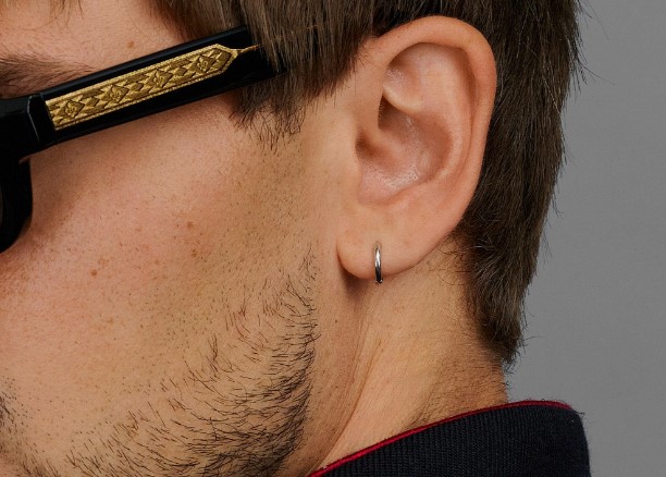 No longer a rebellious act, earrings for men are now a vital detail in the modern wardrobe. Creatives like minimalist cuffs and earrings, tiny diamond studs, and sleek hoops add an unexpected elegance. Small huggie hoops in gold or black are especially popular, as are subtle cuffs for men who prefer non-pierced options. The focus is on detail, polish, and a touch of edge.